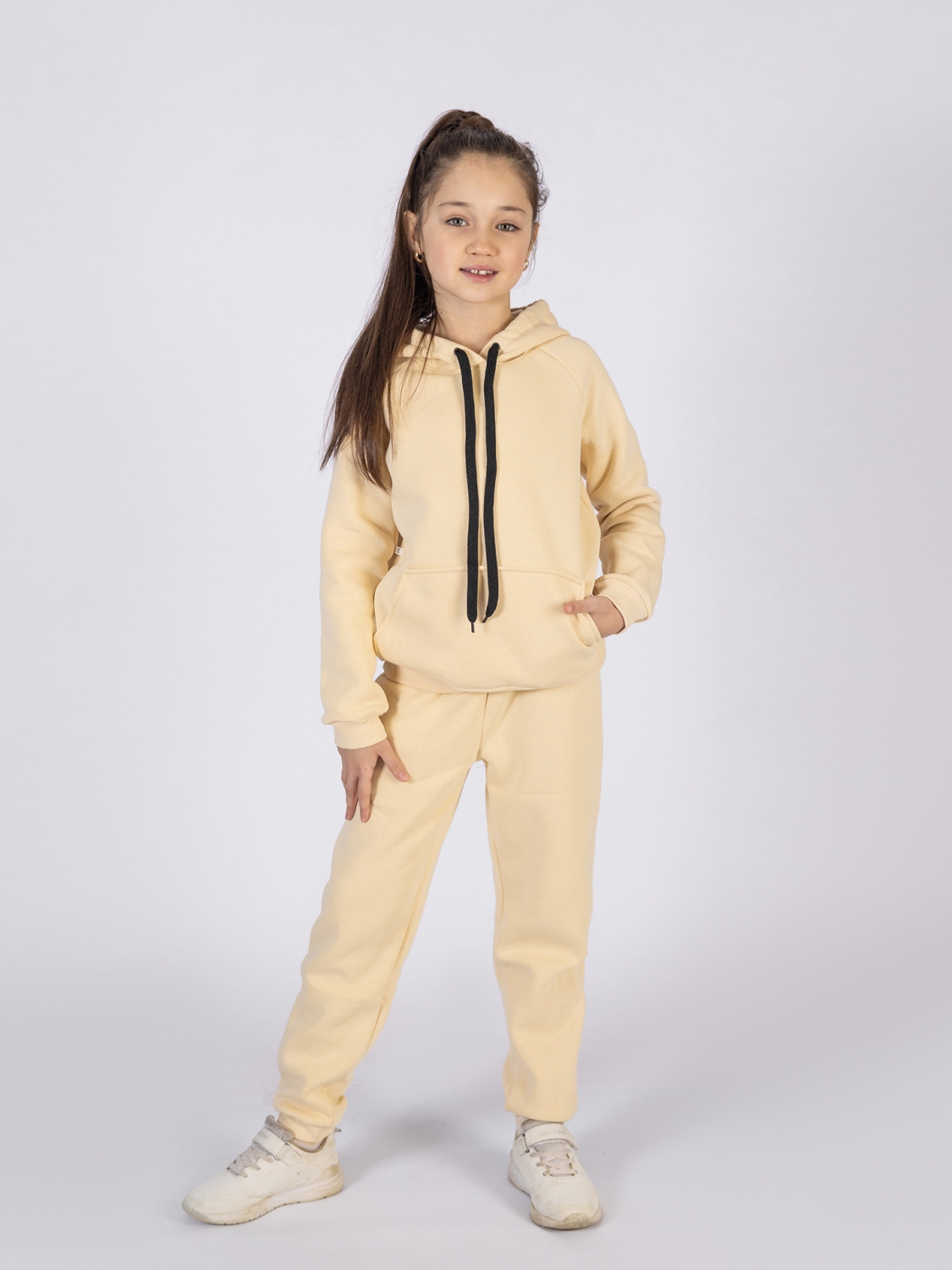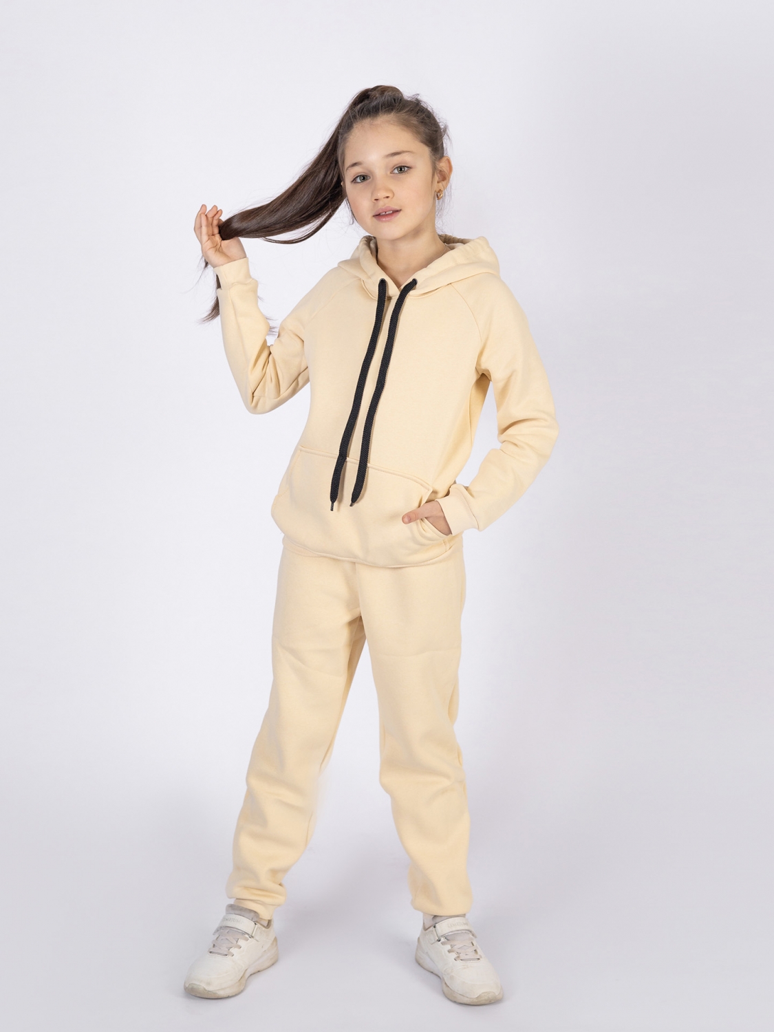 Купить оптом 296-СЛ. Свитшот с капюшоном + Штаны, хлопок 65%, 35% ПЭ, 3-х нитка (начес) сливочный 98,104,110,116 в Озёрске